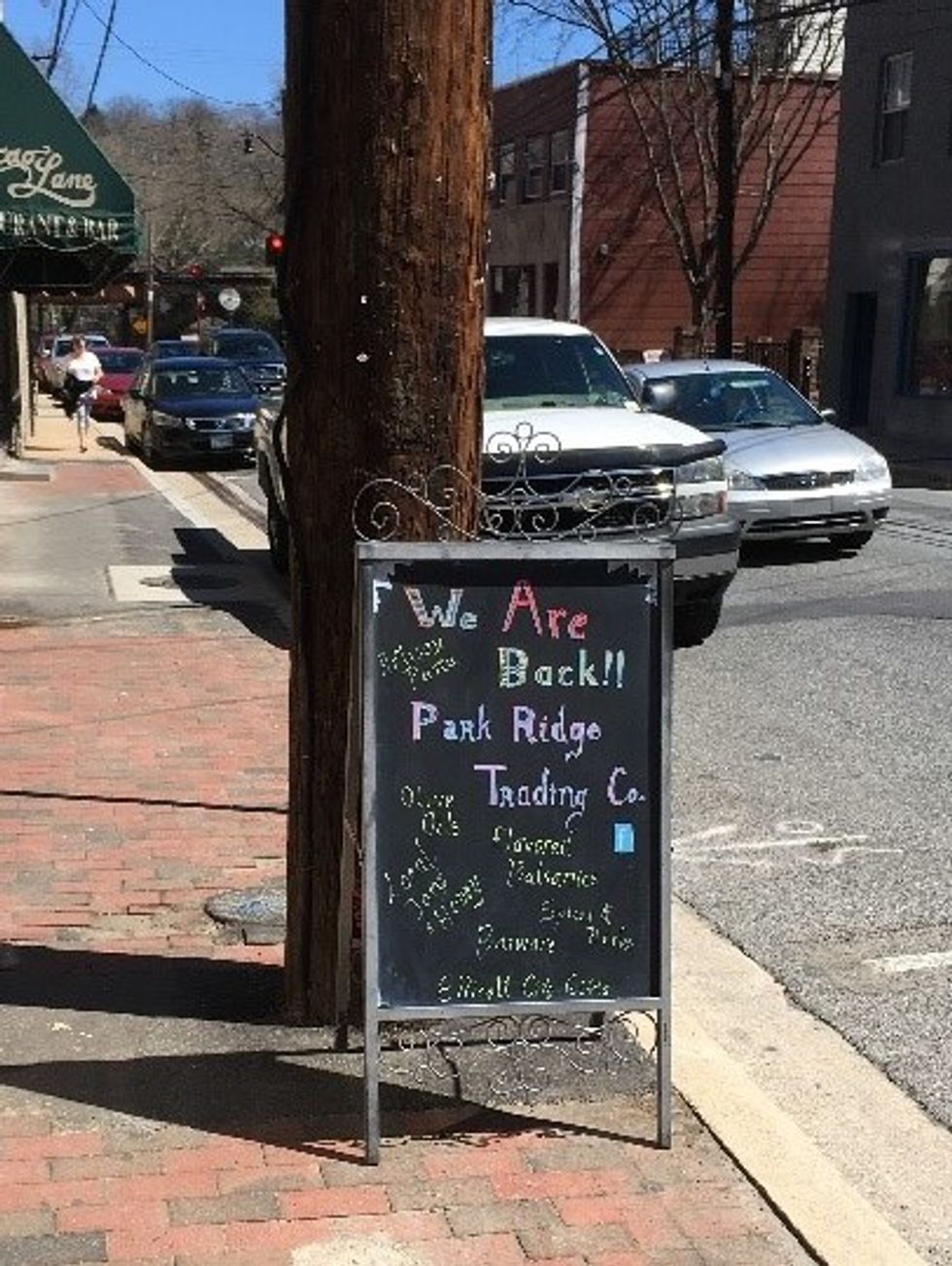 I am stopped by a sign: WE ARE BACK!! it shouts at me. PARK RIDGE TRADING CO. Olive Oils, Flavored Balsamics, Spices & Herbs, Local Jams & Honey. Back? I think to myself. I don’t even remember this place existing before the flood. But the doors are open and, for once, the smell of olive oil is enticing.
