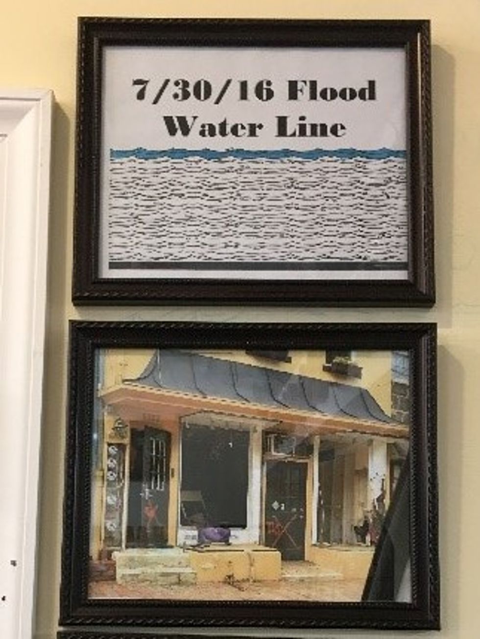 Apparently, everyone on Main Street had lost their businesses (and their homes, since many lived in the apartments above), and 5% of those affected wouldn’t be coming back. Those who were temporarily homeless were sheltered and fed by the farmers’ market, or were shuffled from house to house until something more permanent was figured out. Donna and her family were lucky; she left at 6:30PM that night, before the water got deep. Her husband and son almost stayed in OEC that night to play some Pokémon Go, but decided at the last minute that they were too tired after a day at the beach. Donna then points to a sign above our heads.