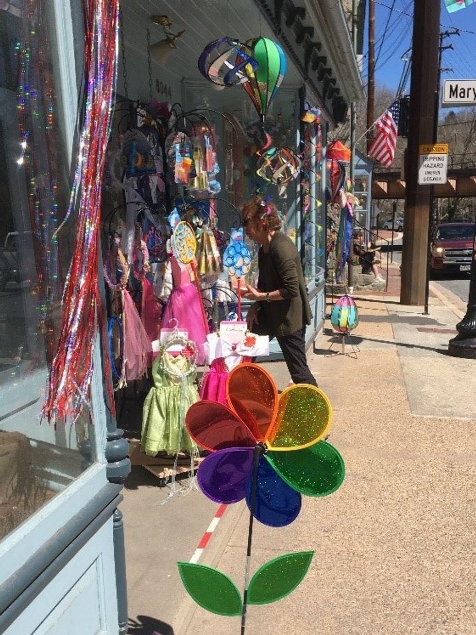 Finally, I stop in front of a toy store, which has surrounded itself with colorful spinning wheels and gentle wind chimes. A woman dressed in senior-signature all black stands among the toys, and I hear from her a single sigh.