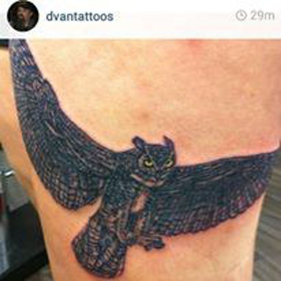 I had this tattoo done right before my last semester of college. (the first time around). This is what I called the "graduation present to myself." I just love owl and that is really the only reason I got the tattoo done. This was done at Rorschach Gallery located in Edison, NJ.