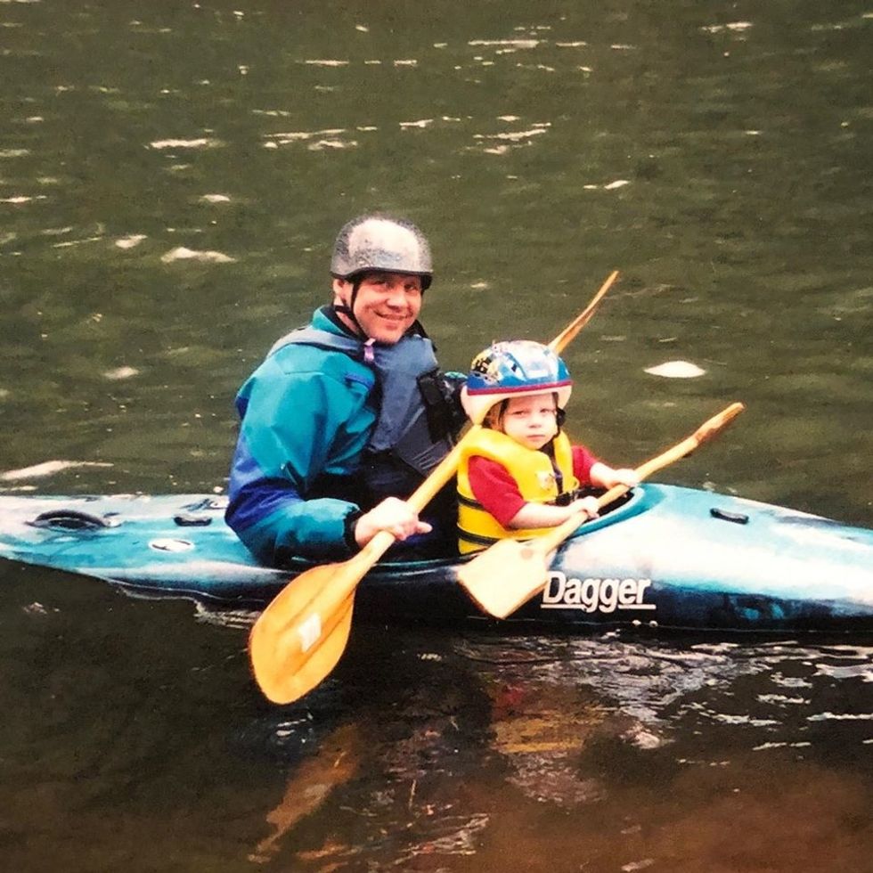 Sometimes as a child my dad would let me sit in his lap with no sprayskirt and paddle me through some of the easier stuff. One time when I was about 4 I fell out and got a bunch of water up my nose, then swore I'd never get in a kayak again. That didn't hold up.