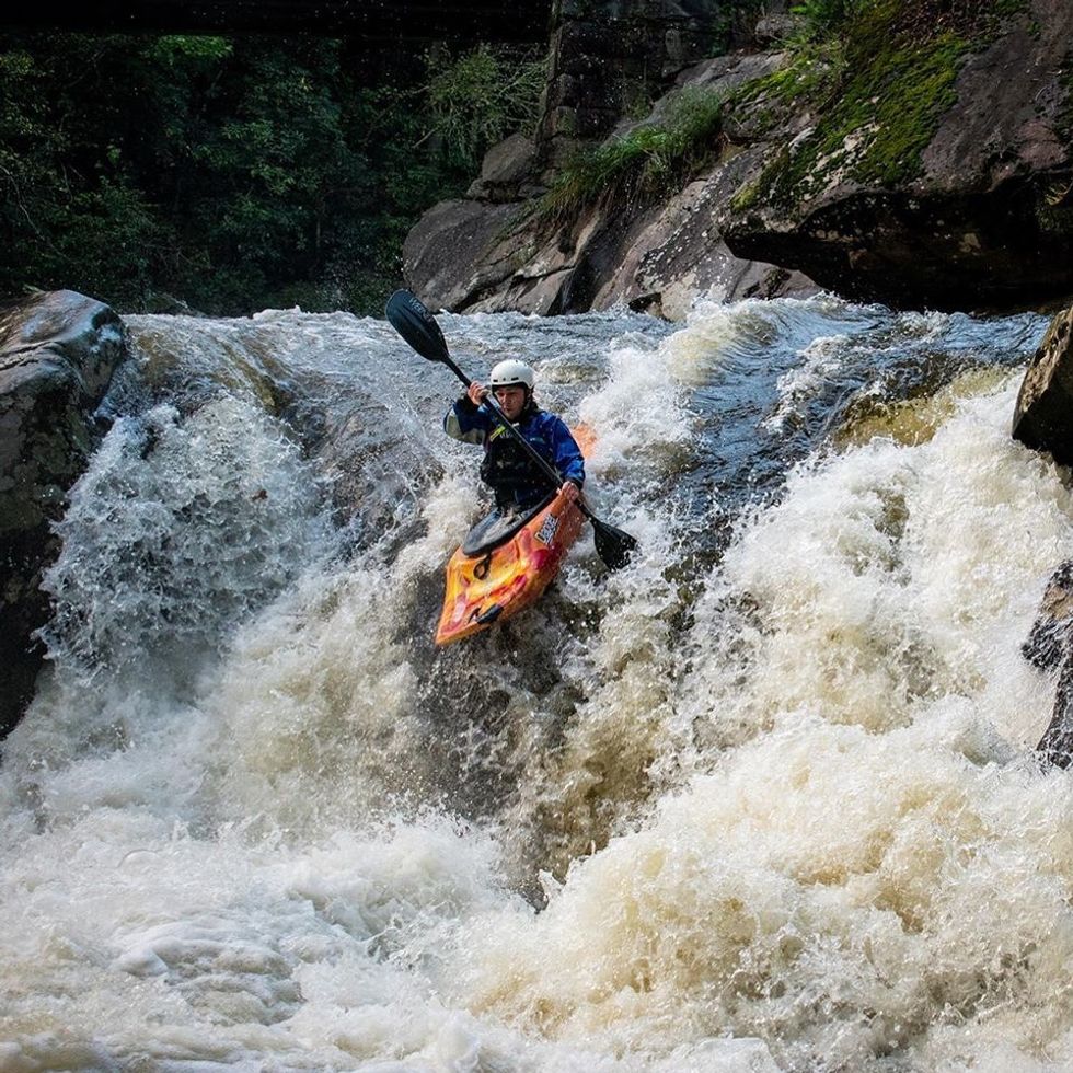 The Cascades have come to be one of my favorite runs, and this was my personal first descent. Simon showed Coty and I down, and I'm glad I had Coty to be terrified with me. The Horns of God horizon line is pretty damn intimidating, especially that first time. I swam on the second drop of Chinese Feet and got a little spooked and started running the left line for months. After the lap, Simon asked if he could hop in my Mamba and run Whiteoak Falls (the massive drop above the Cascades) which he proceeded to style before flipping on a log at the bottom (before rolling up off of it seamlessly). Such a cool day.