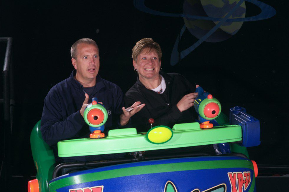 On Buzz Lightyear's Space Ranger Spin you become a space range in hopes to help defeat the Evil Emperor Zurg. This is an arcade type game where you use laser blasters to hit the "Zs" that are placed throughout the ride in order to earn points. Every time I rode it with someone new we would turn it into a competition to see who could score the most points. It is a ride that will be enjoyed by everyone in your family.
