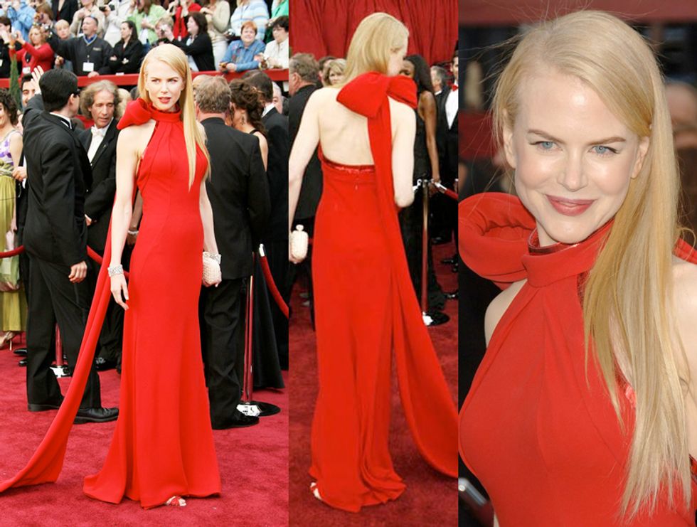 Pictured above is Nicole Kidman wearing one of the most iconic dresses of all time. At the time, Kidman received a lot of criticism for wearing a bow bigger than her head, but the Balenciaga gown was an elegant and eye-catching choice.