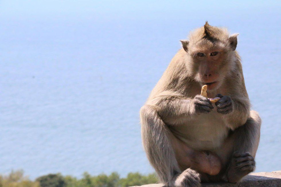 After the weekend, we traveled four hours away to Pattaya beach. The first stop there was on a long winding road and I got my first glimpse at Thailand's resident thieves. These monkeys were nothing to be played with. They'd steal from you, your car, the local banana vendors, and each other. You could buy a bunch of bananas to feed the monkeys for 10 bhat; which is about 20 cents in American money. These monkeys would jump on your car and bang on your window if they thought you had food.