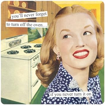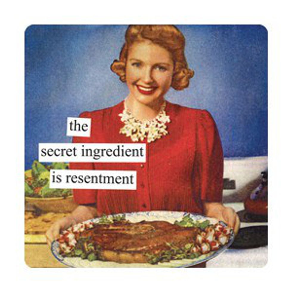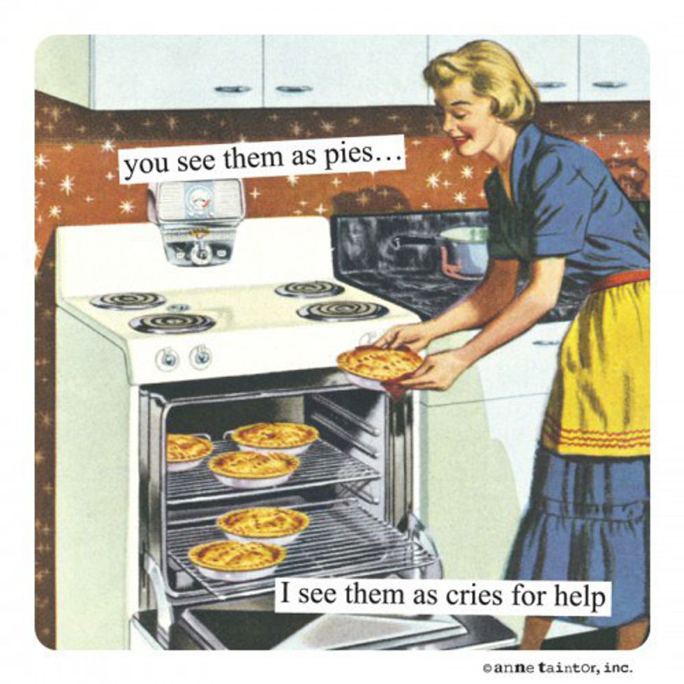 Over Spring Break, I had the precious opportunity to "play house" with my boyfriend while his family was away. I was looking forward to cooking for myself — dining hall food is punishment at this point — and spending the week relaxing down by the beach. Little did I know that the adult responsibilities of house sitting, cooking and cleaning, and caring for a pet would prove more harrowing than I had anticipated. My experiences can be easily summarized by these less-than-enthused 50's housewives from the Anne Taintor collection of Vintage Revisited.