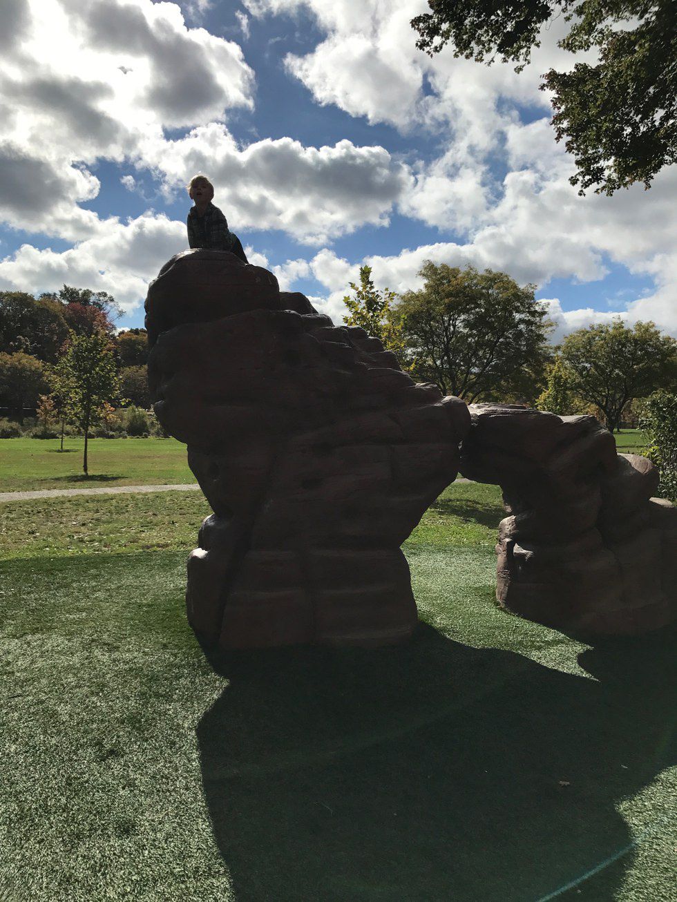 Wednesday: Gus (Simba) finds Pride Rock at the best park ever.