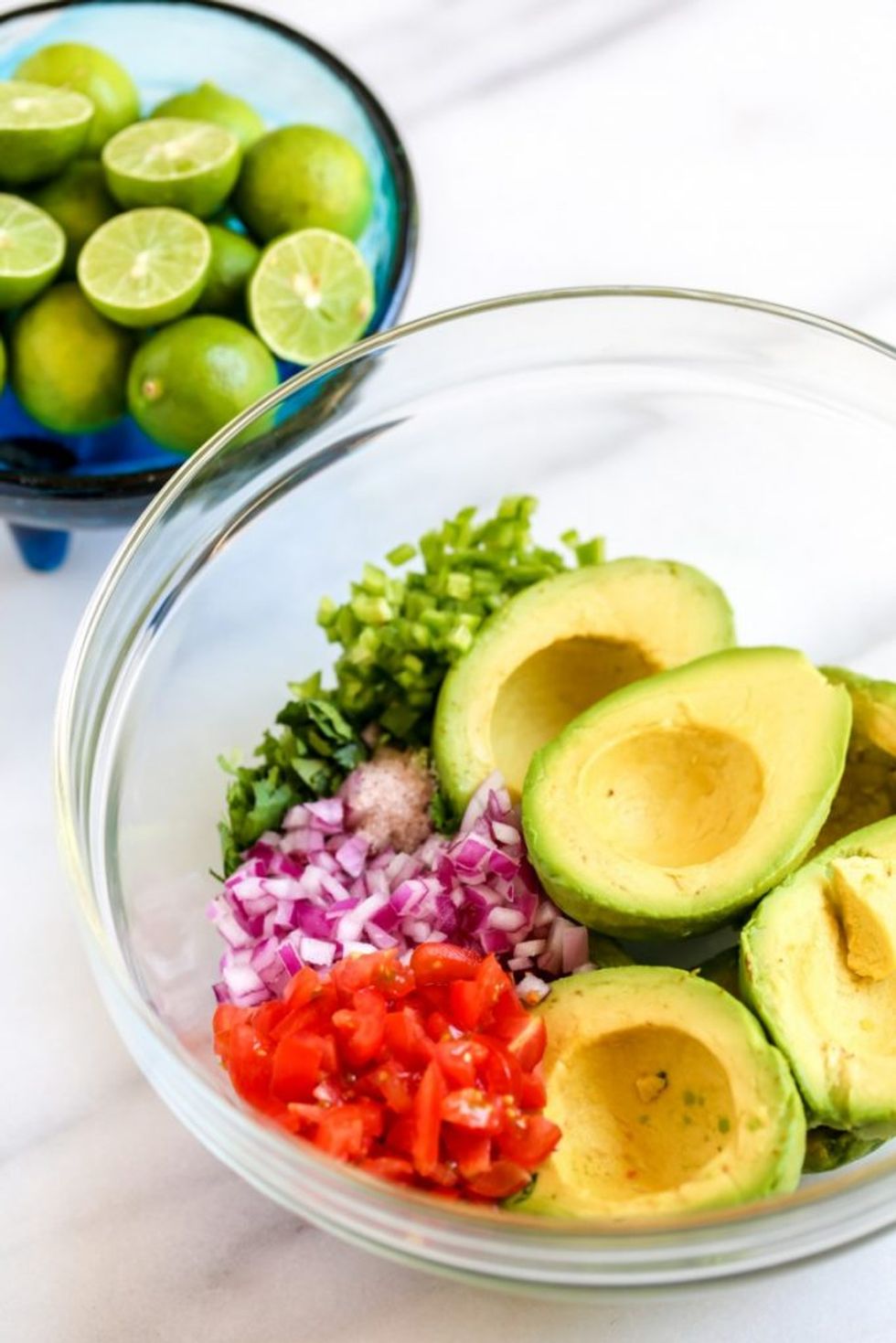 This recipe can be chilled overnight if serving the day after making it. The guacamole can be used as a dipping sauce for corn tortilla chips or topped on toasted baguettes.