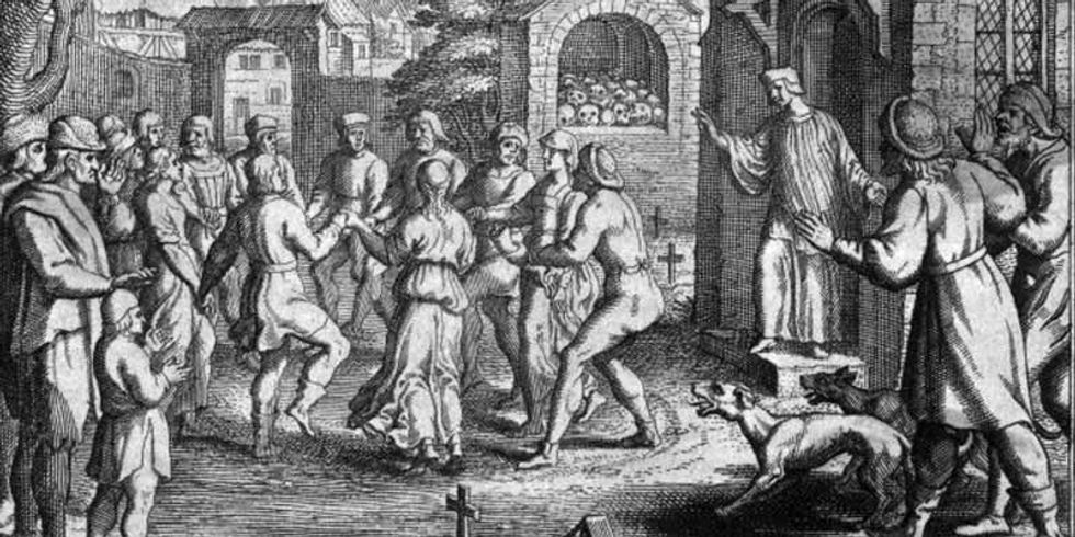 The Dancing Plague of 1518 brings a whole new twist on "dancing till you drop". In 1518 in Strasbourg, Alsace about 400 people took to dancing for days without rest and many died from exhaustion. The dancing epidemic lasted for over a month. The outbreak began in July 1518 when a woman named Miss. Troffea began to dance in the street. Others soon to join her and began to drop like flies. Strasbourg was not the only place affected by the plague either. Other regions of Europe experienced the same dancing epidemic. But what caused these people to dance until they died? At the time, supernatural reasons seemed to be a main cause of the dancing madness. This theory was later replaced by natural causes such as having "hot blood". However, recent studies have found that at the time, there was possibly a toxic fungi that affected the wheat was consumed by the people through bread. The fungi had similar structures to that of LSD. This could very well be the case, but why dancing? And how they never stopped until they died of exhaustion?