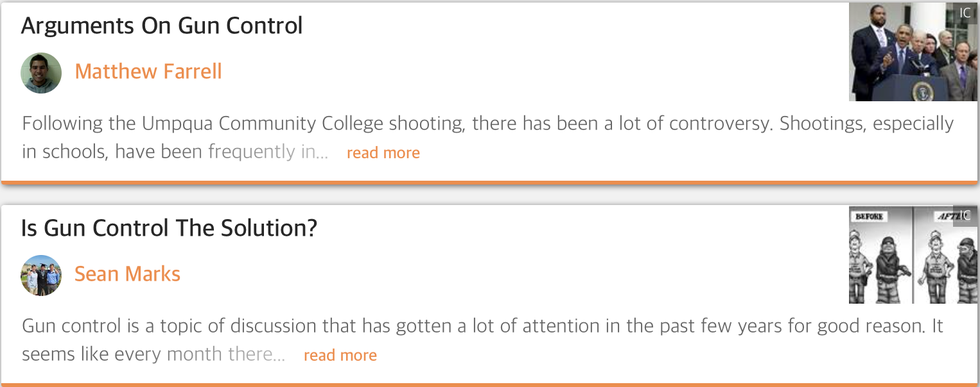 I recently read an article on gun control and honestly, it kind of made me a little upset. It wasn't because I had a differing opinion or even that the article was worded in a way that evoked such emotion from me; in fact, I agreed with half the points the article was making. The problem I found was that too many American teens claim to know what the issues are, and what the solutions to those problems are, when in reality, they've missed the point or sugar coated their position.