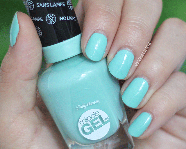 This is Prince Char-Mint by Sally Hansen from the Miracle Gel collection. This color is more of a pastel mint than 'Mint Sprint' that is a true mint color. If using this color, make sure to use the special Miracle Gel Top Coat as well.