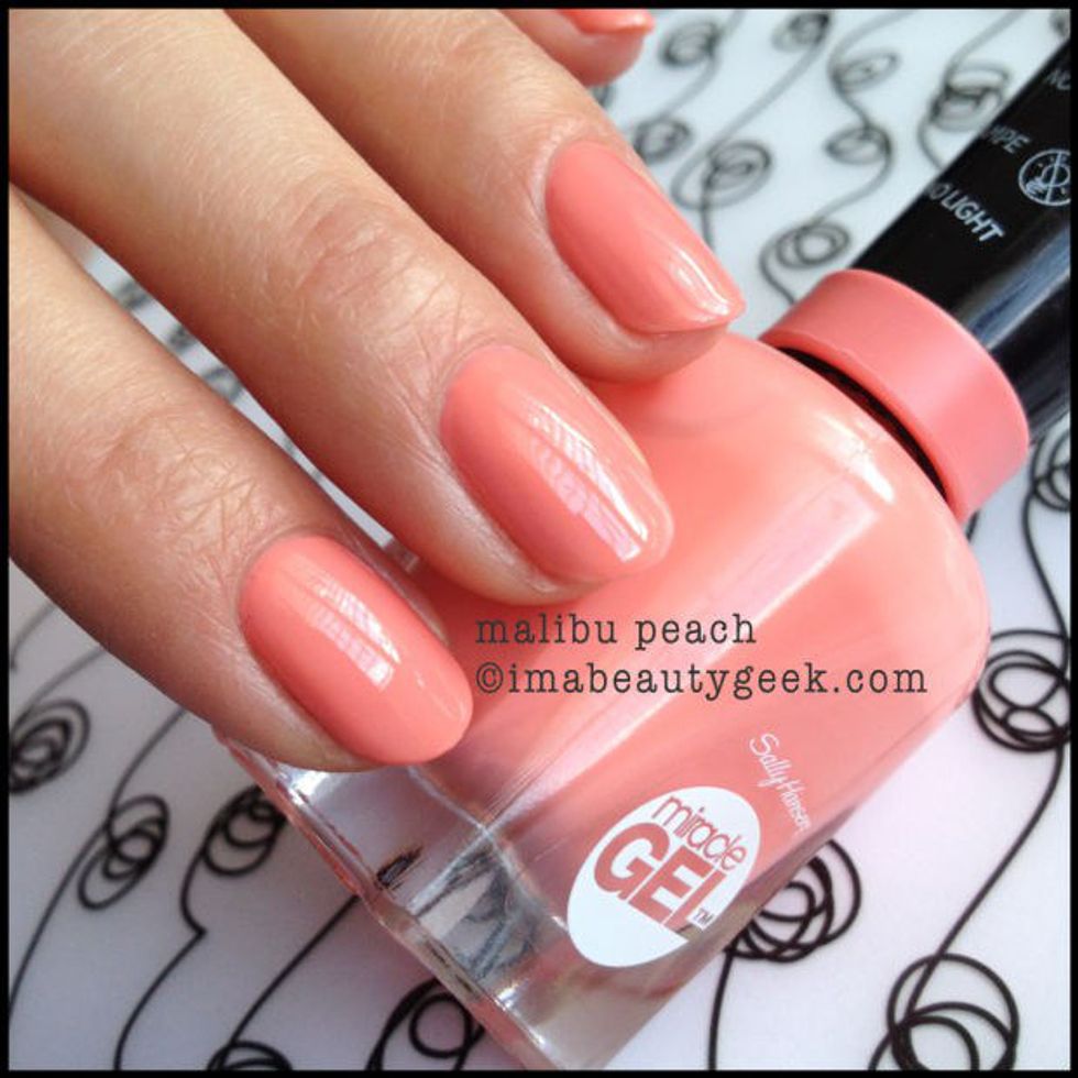 This is Malibu Peach by Sally Hansen from the Miracle Gel collection. As a matter of fact, this was one of the first polishes that I ever owned from the Miracle Gel collection. I was drawn to this color because of its pastel pink orange color that is a neutral shade and doesn't make your nails stand out as much.