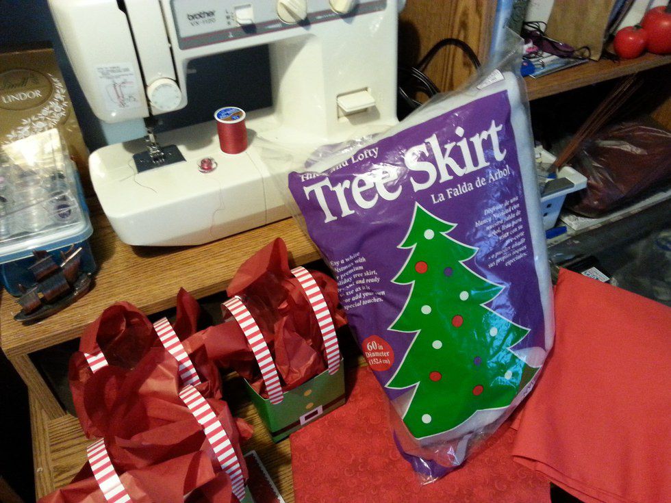 Yes, I'm sorry to say that even though we trim the tree every year with love and care, we wrap a sheet around the base to hide the stand. This year, since we picked up a second tree, we knew that now was the time for change (if we wanted to have any sheets to put on our bed, that is). Unfortunately, when I checked my local retailers, I was either underwhelmed with the quality of the skirt or overwhelmed by the price. Why, I could make a better skirt for less!