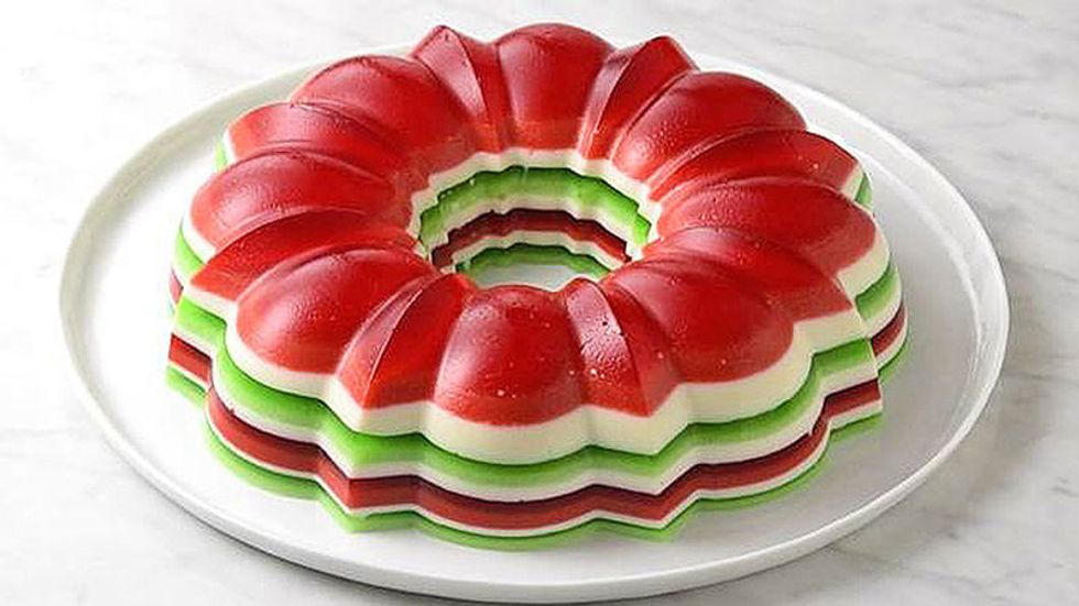 Jell-O salad is possibly one of the most confusing desserts ever. It is in no way a salad, but literally just a mold of Jell-O. The classic Christmas Jell-O has three colors and flavors: red, white, and green. This may look appealing to the eye, but it tastes disgusting.