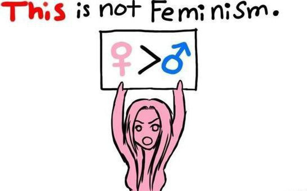 So let's take a step back. Feminists are not radical man haters. In fact, the best outline of feminism I have heard is from Chimamandra Ngozi Adichie's TedX Talk, "We Should All Be Feminists." Beyoncé featured samples of Adichie's message on her surprise album in 2013.