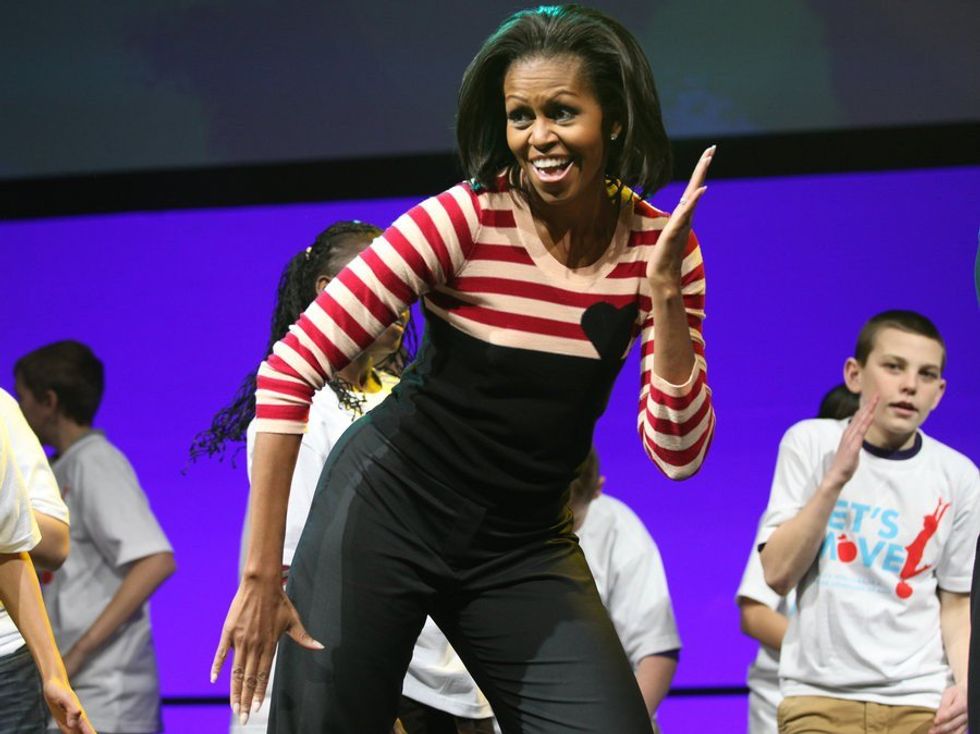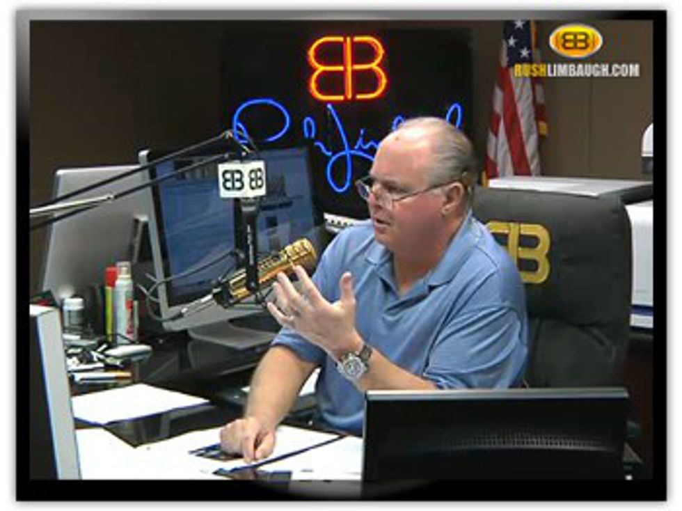I'm not saying the right objects to Mrs. Obama's efforts because the Tea Baggers are stupid, or because they're hysterical, or because they hate black people. Though all of that is true. But what does it say about America that even a first lady suggestion has to be controversial---especially when she purposefully picked something no one could disagree with: Maybe we should send our kids outside to play. You know who else liked to send people places? Hitler. Rush Limbaugh makes a crack about this every week. Because who better to get your health advice from than a drug addicted fat man? Rush, I have proof that no one in the government is forcing you to eat right and exercise: you.