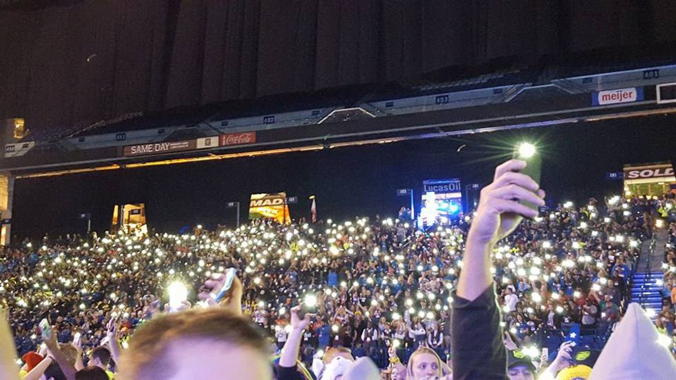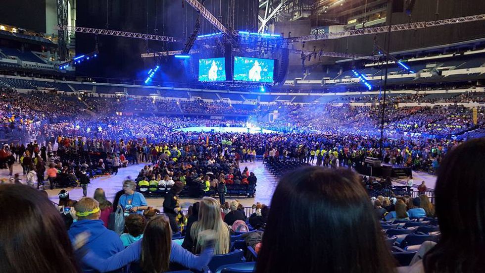 The part that always gives me chills is the music. Since I was a little church-goer, I've been told that singing is praying twice. Little me always thought that was the coolest thing ever. As I grew up, I tried to live by this statement. At church and at youth group events I would sing the songs with all my heart, not caring what I sounded I like. Singing has always been my way to feel connected to God and my faith. Now I have a question: if singing is praying twice, how powerful is thousands of people singing together?