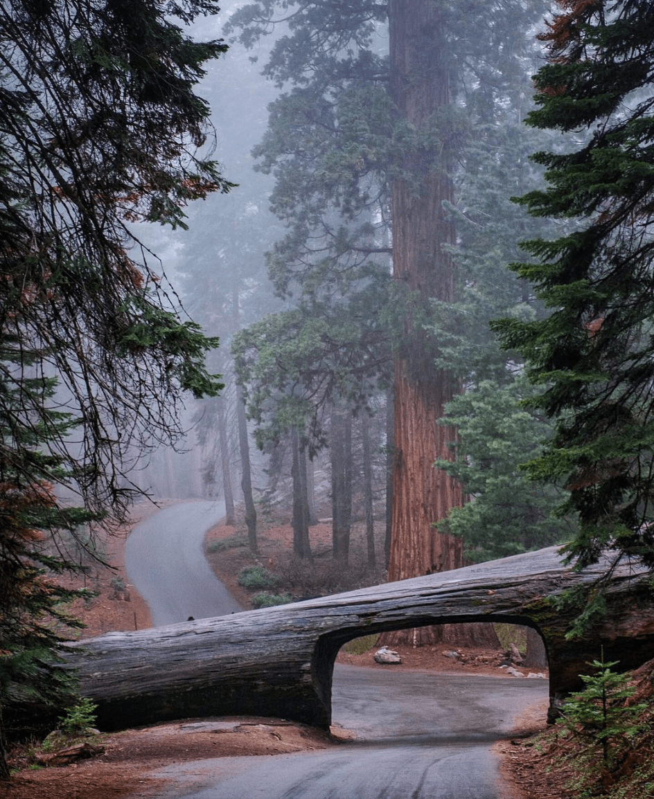 The world's largest trees grow (and fall) in the forested areas of Sequoia National Park. The namesake trees in this park reach unreal heights of 5,000 - 7,000', and yes, there is actually a fallen tree you can drive through. Named Tunnel Log, this passage is located on the drive up to Moro Rock. Driving through a tree is truly a novelty, and can be a busy location for park visitors and photographers. Pros recommend waiting till dawn when the tourists retreat to their tents or lodges and the mist begins to settle. With so many beautiful trees, the vivid colors that arrive every fall are breathtaking.