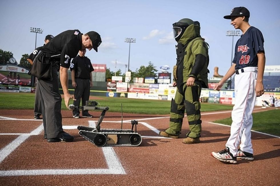 Plus, the first pitch of the night was delivered by a robot controlled by Navy EOD personnel.