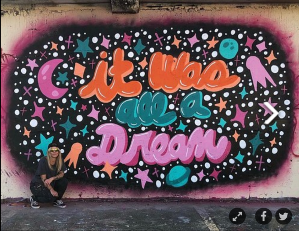 A beautiful mural done by Gina Elizabeth Franco featuring the artist in this photo