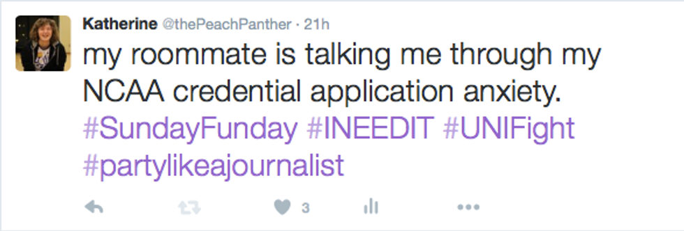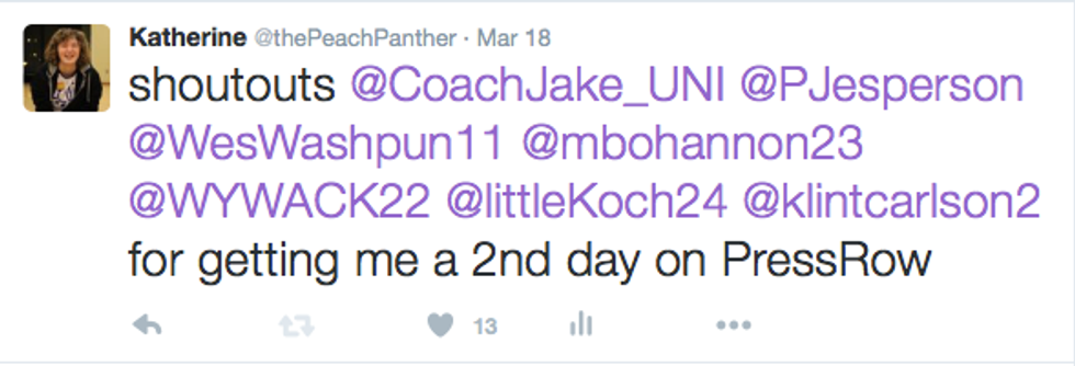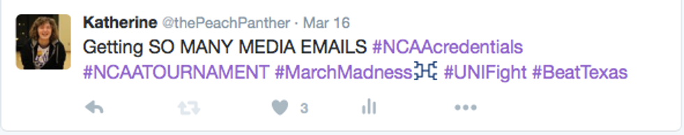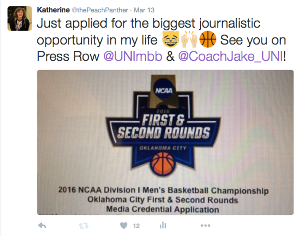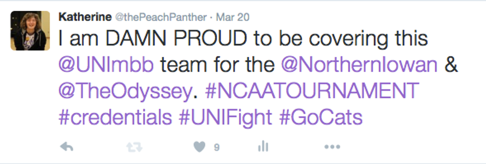 Thank you to everyone who has helped me through this journey: my editors at the Northern Iowan (where I got my start in journalism), my editors at the Odyssey (who gave me all the information to equip me for this application opportunity), the UNI assistant A.D. for athletic communications (for arranging interviews with the team) the basketball team (for being willing to comment on pieces, as well as getting to the NCAA Tournament so I could report in the first place) and the UNI alumni that I've been in contact with for interviews, as well as my friends and family who have been super supportive and assuring.