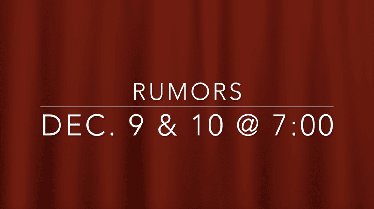 On December 9th and 10th at 7:00 in the Hemingway Theater, Dylan Turner's directing skills will finally pay off. As part of his senior capstone project, he directs Neil Simon's Rumors, a modern comedy that will definitely be fun for everyone to watch. As a group of rich New Yorkers show up to what seems like an anniversary party, things quickly start to go awry. Scandals, rumors, and even some gunshots create a night to remember. Will they get away with it? Find out this weekend! The tickets are FREE for everyone. Come one, come all and have a night of laughter at Stonehill!