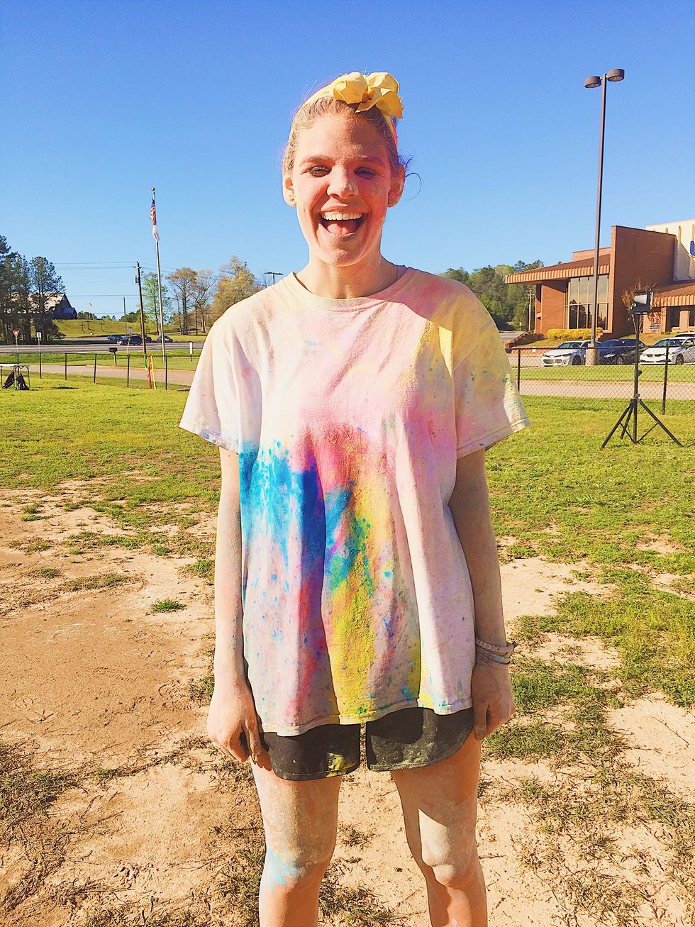 For those of you who don't know, participating in a color war not only guarantees immense amounts of enjoyment but also a rainbow-tinted coating of somewhat stubborn colored powder (corn starch and flour dyed with food coloring). My high school had a color war yesterday, and it did not disappoint, though my feet were still slightly blue today as I walked into church, and I did not particularly want to lead worship with blue feet and one pink ear. I talked to others who had attended the event as well, and they seemed to have a similar problem ridding their skin and clothing of the stuff.