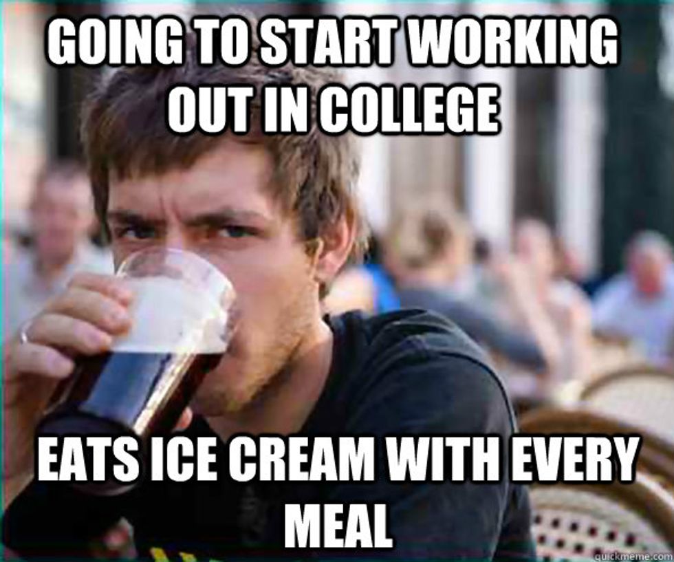 I mean, c'mon, the Freshman Fifteen stereotype has to come from somewhere! And from personal experience, I am here to say that it is real and it is the worst. College is a magical place where there are no moms telling you to fix yourself a salad or have an apple for dessert. (Seriously Mom, an apple?) With Walgreen's and Del Taco open all night to satisfy every 3 am craving, how can we resist? First let me say, satisfy that taco craving sometimes! Indulge every now and then because, well, you can! But that Freshman Fifteen is waiting around the corner with a bag of Doritos, a super gulp, and an entire large pizza. If the weight gaining or health aspect is not enough to convince you, think about the character traits you develop as you binge. Lack of self-control. Lack of self-respect. Lack of motivation and drive.