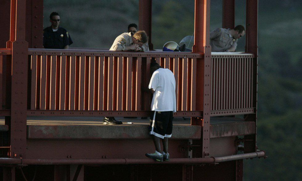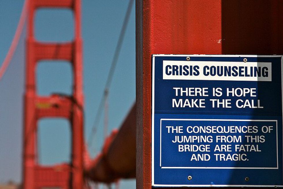 The speaker's name was Kevin Berthia. You may have seen his picture before. He is the man standing on the edge of the Golden Gate Bridge, being talked to by a patrol officer. In 2005, Mr. Berthia almost jumped off of the Golden Gate Bridge. The Golden Gate Bridge is one of the most popular suicide destinations in the world, with over 1700 people who have plunged into the bay. The Golden Gate Bridge is picturesque, and the fall has a 2% survival rate, making it ideal for those who want to end their lives.