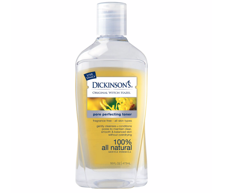 Dickinson's Witch Hazel Pore Perfecting Toner makes my skin feel squeaky clean after I apply it. It's all-natural, cruelty-free, and fragrance-free. The toner helps make my face less puffy in the morning, get's rid of any excess oil, and doesn't dry out my sensitive skin. And the high witch hazel content helps disinfect any blemishes I have and reduces the swelling of them after continuous use.