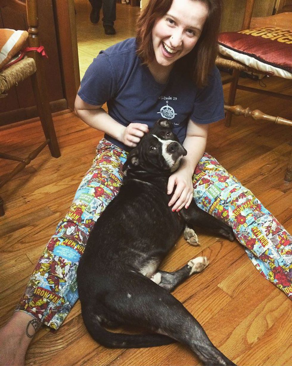 My roommate and I played with him that day, which consisted mainly of his resting his head in my lap and my stroking his white-speckled fur. I visited him again a few days later on a particularly dreary, overwhelming day - as I sat there, petting him, my sadness and anxiety was immediately erased. I felt happy, calm. I knew this dog was going to come home with me. And, a few days later, he did.