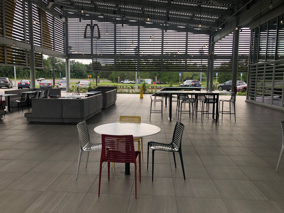 The new McDonald's also includes a gigantic outdoor patio that is perfect for Florida's hot days, since the solar panels above it provide a decent amount of shade and the area is surrounded by fans.