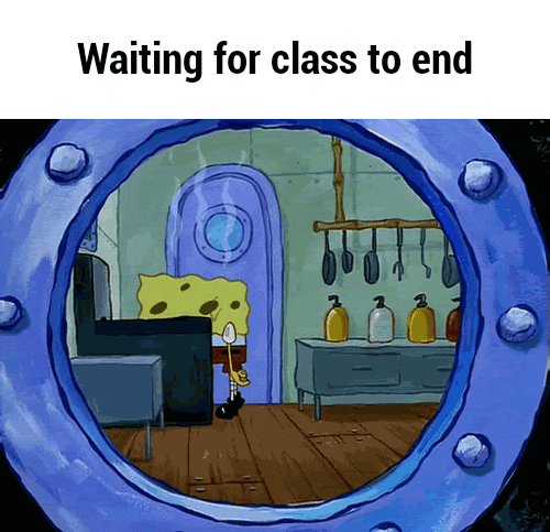 - Oh my gosh, there is two minutes left in class. I can’t make it.