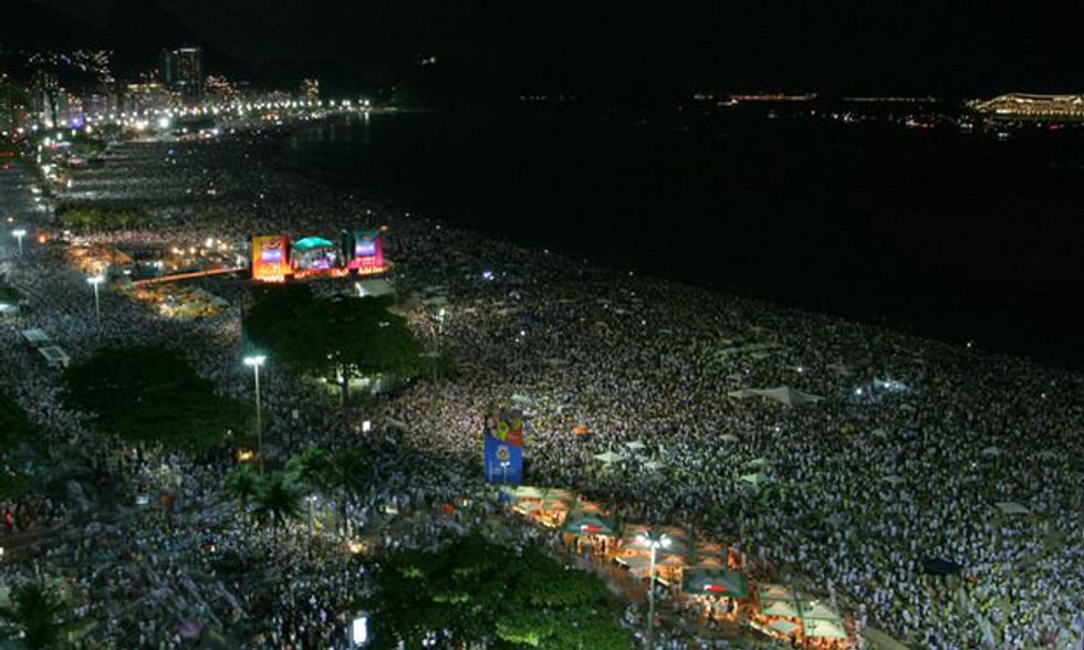 The New Year is referred to as Reveillon. Brazilians usually wear white which symbolizes that the next year will be better than the passing year. Also, watching fireworks by the beach is a tradition most families follow. After the clock hits midnight, people go to the sea and jump over seven waves which symbolizes good luck. Also, lighting candles near the water and throwing flowers into the water represent good luck. The people are appeasing to the water goddess Lemanja. She will bring peace, good luck, and prosperity to the people.