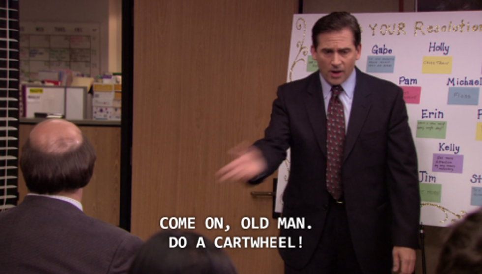 Eating right is another big resolution fail. One of the reasons why is because some people don’t know enough about nutrition to know what their daily intake of nutrients should be. Another reason is because people may cheat and indulge in one of their favorite unhealthy snacks which progress until they stop their resolution altogether. Kevin from “The Office” is known for his unhealthy eating habits and being overweight. He sometimes plays a game to see how many M&M’s he can fit in his mouth at once. He made a resolution to eat more vegetables but didn't follow through until Michael forces him to. “I said that I would eat more vegetables and I haven’t yet, but it’s okay because I still have time since last year I ate none.”