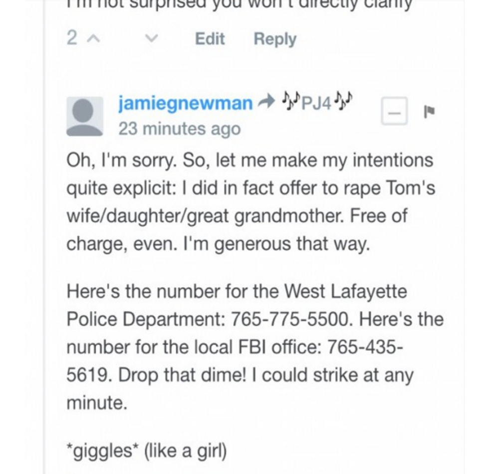 Constructive criticism aside, the students of Purdue Students for Life (the local branch of Students for Life of America) appear to have received opinionated correction by Newman who finds no hesitation addressing their members as "vile, racist idiots" and "epically clueless or profoundly malicious."