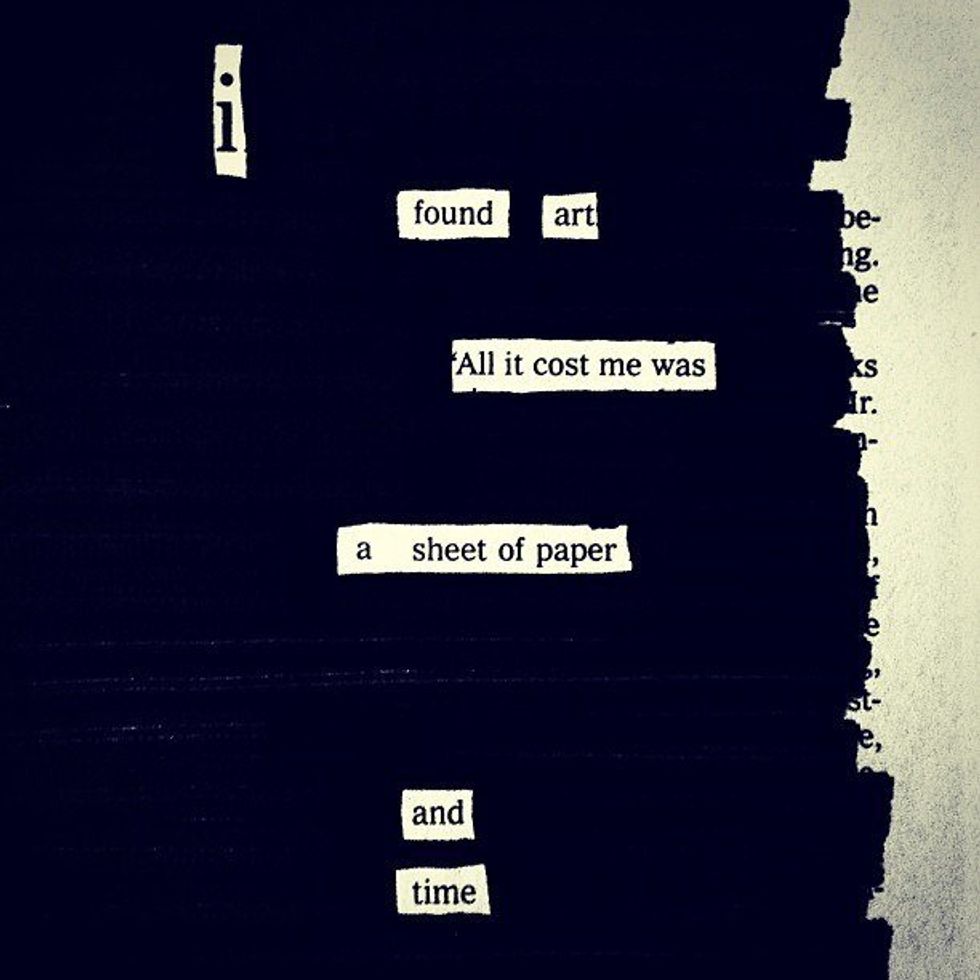 Blackout Poetry can also be a very relaxing activity or hobby. I love coming home from a long day of class or work and simply lay down on the couch and create wonderful and whimsical poems from newspapers and magazines. Truthfully, Blackout Poetry helps me to forget about all my stresses in life and lets me focus on only the words on the page.
