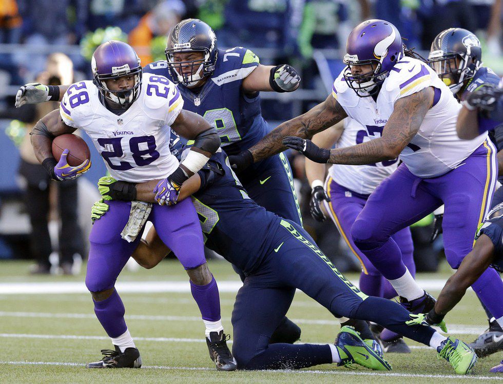 The picture above paints the story that will unfold during the game. Seattle's defense should bottle up the run and pass game of Minnesota. Seahawks dominate in a 35-3 victory.
