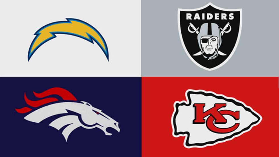 San Diego Chargers, Oakland Raiders, Denver Broncos and the Kansas City Chiefs (Left to Right).