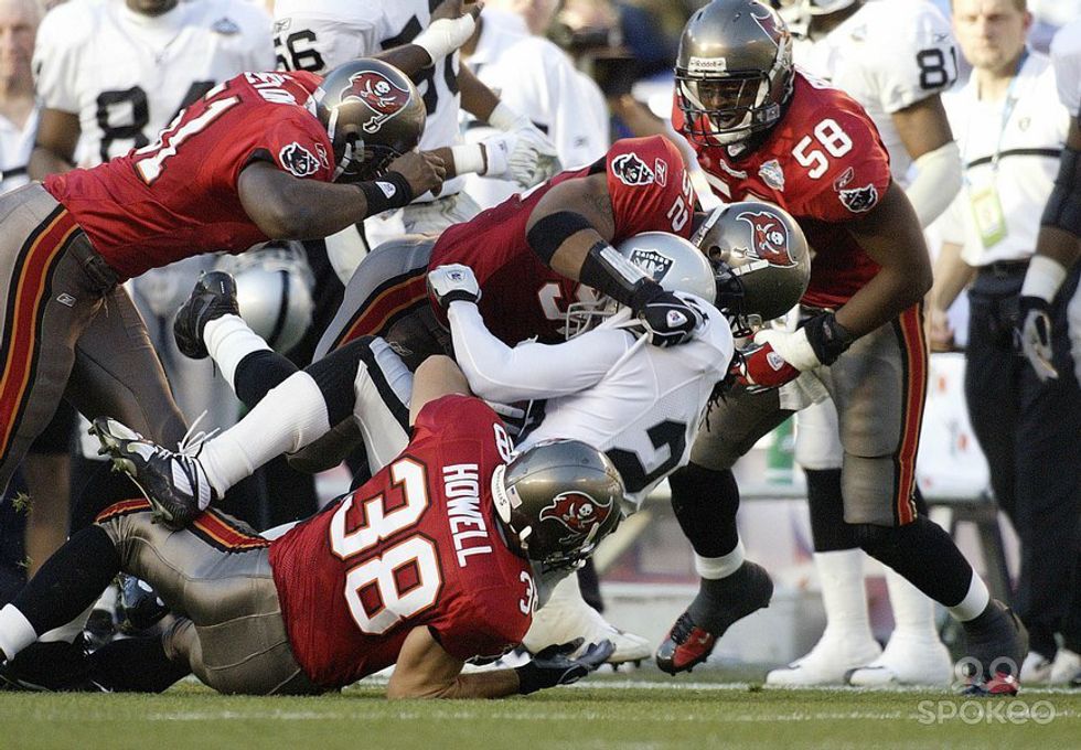Though no championships were won under this future famed owner while he was a coach, the Raiders did manage to snag an AFL Championship (under John Rauch as head coach and Davis as general manager) before the merger in 1970. Before the conclusion of the 20th century, the Raiders won three Super Bowls, their first being in 1976 under football legend John Madden. In that time, they also produced future Hall of Fame players on both sides of the ball, including defensive end Howie Long and running back Marcus Allen. The Raiders won their last Super Bowl in 1983 (as the Los Angeles Raiders, which they were from 1982 to 1994), and have not even made the postseason since their blowout loss to former coach John Gruden and his Tampa Bay Buccaneers in Super Bowl XXXVII.