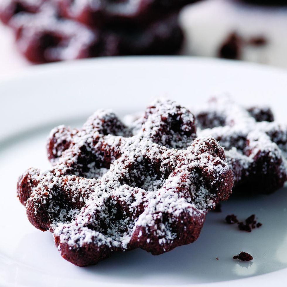 4. Once the waffle iron has completed heating the mixture, top the cookie with confectioner's sugar or drizzle with melted chocolate.