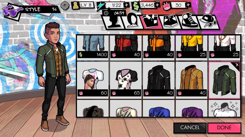 There is a ton of clothes that unlock as you level up within the games and an equally massive selection of accessories, allowing for dozens of possibilities for outfits. There is a notably great selection of clothing and accessories for males as there is for females, which always has not been the case for those who are familiar with celebrity game apps or any video game that allows for player customization. The hairstyles for the male character are nice and detailed as well.