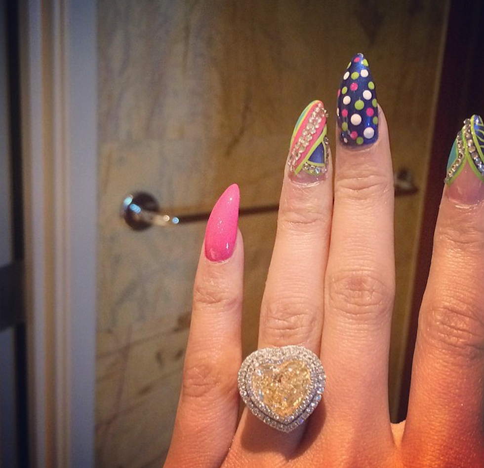 Recently this past Wednesday Nicki Tweeted and Instagrammed her lovely engagement to fellow rapper Meek Mill, showing off an enormous heart-shaped ring that E! estimated to have been around $500,000.