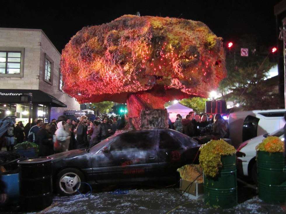 Nightmare on Chicago Street is an annual Halloween street festival held in Elgin, Illinois. For one night only, part of the city gets a post-apocalyptic makeover, complete with wrecked cars, military vehicles, and of course, zombies. Downtown Elgin is a pretty decent place to go any day, but it’s a totally different experience during the event. Walking the normally peaceful streets, you’ll see drums of toxic waste, suspicious piles of guts, and boarded-up buildings. This is the safe zone, an area for survivors to party and stay alive during the zombie apocalypse. Thousands of people swarm to the event every year to take in the crazy atmosphere.