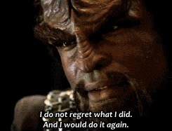 Do I speak Klingon? No. (Or, ghobe'.) Should I? Defs. Just with any language, there are some truly glorious phrases that are very useful, and so in my learning, I'll share them with you. Klingon's like German -- sounds aggressive no matter what you're saying. Unlike German, it really is.