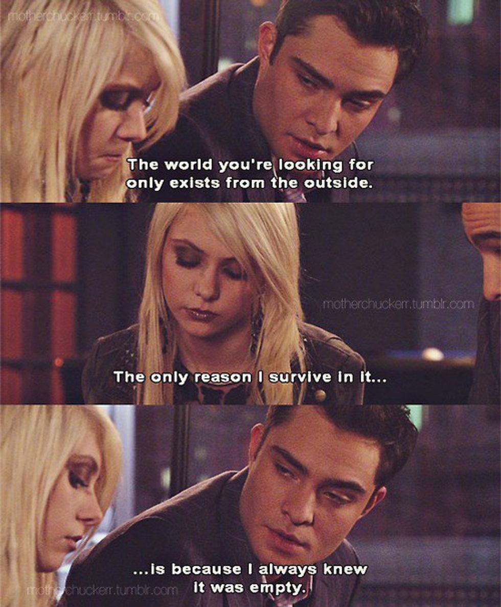 Take Jenny for example (again). She wanted to be apart of Blair's world so badly that she ended up alienating everyone else in her life. Now she isn't even in the show anymore. Not everything is as it seems.