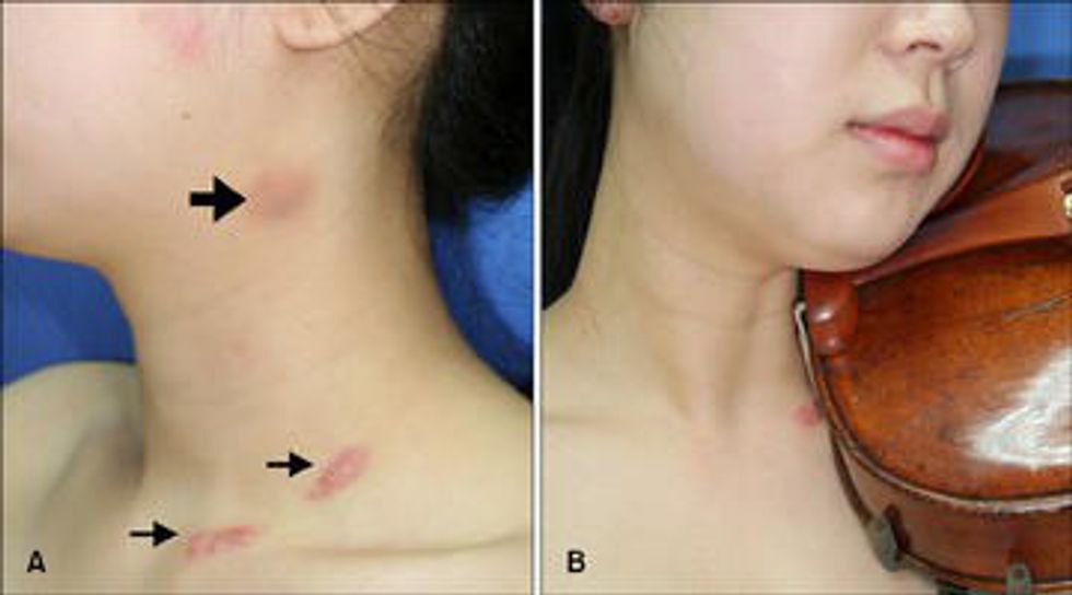 These marks can be rather easy or pretty hard to obtain on your skin, depending on how sensitive or tough the player's skin is, but this mark shows dedication, motivation and a lot of practice! Violinists are proud of their violin hickeys and aren't afraid to show them off!