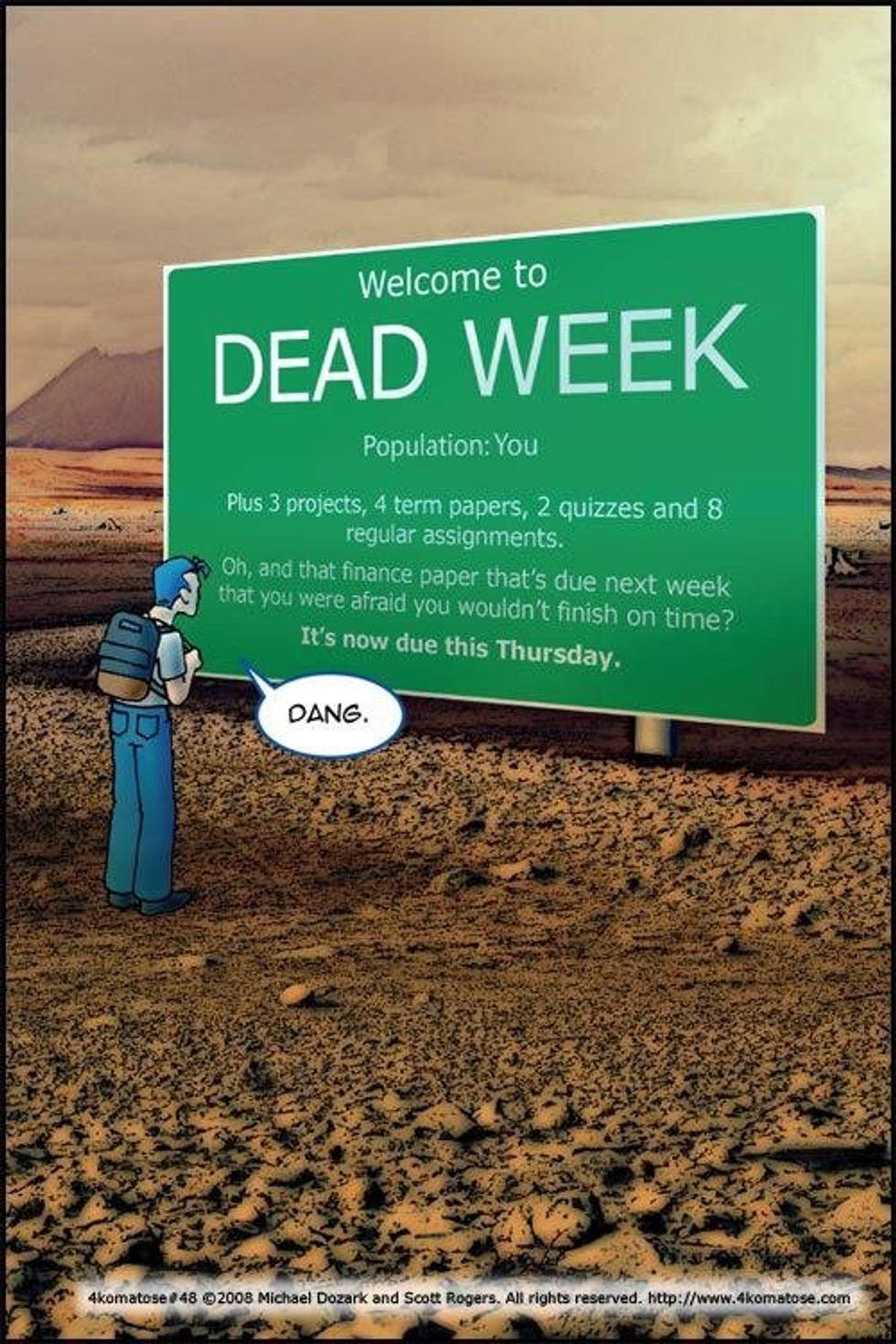 You have to love finals. Along with your overdosing of caffeine, lack of sleep and hopes to have a life, the world could not possibly give you more stress than this, right?
