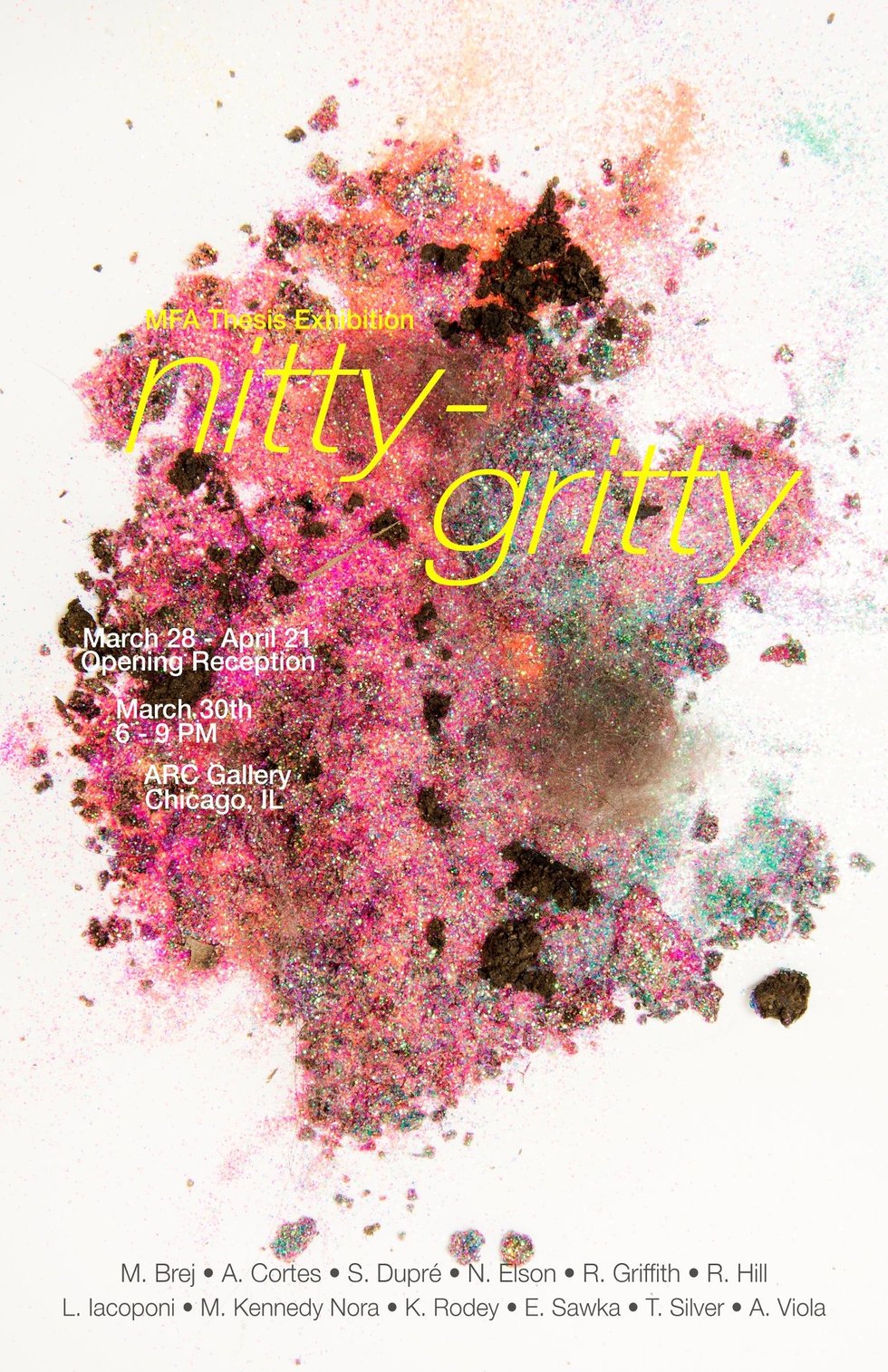 Northern Illinois University's MFA Thesis exhibition nitty-gritty, will be held at ARC Gallery in Bucktown with a reception on Friday, March 30, 6-9 pm