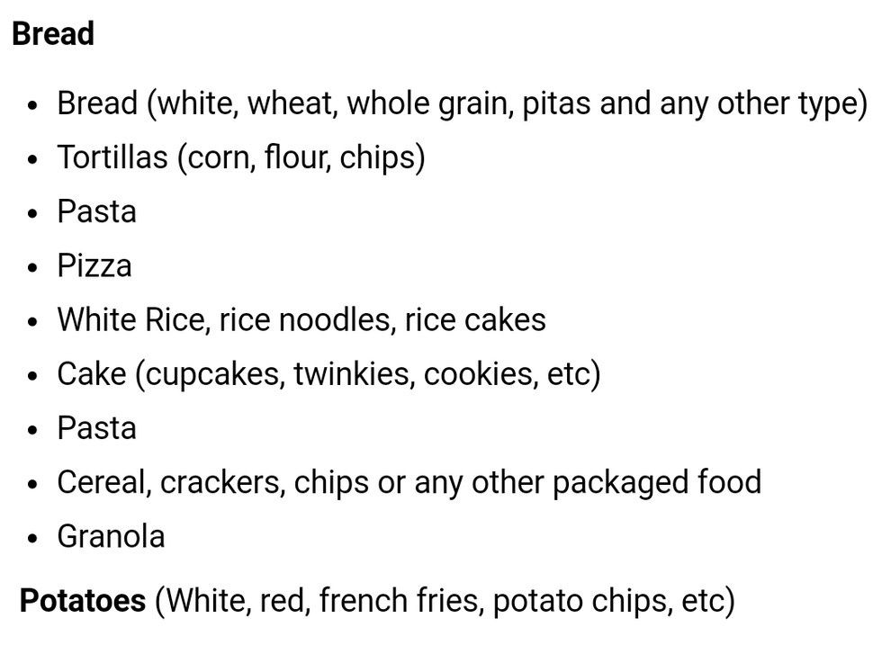 Here's what it said specifically about bread: